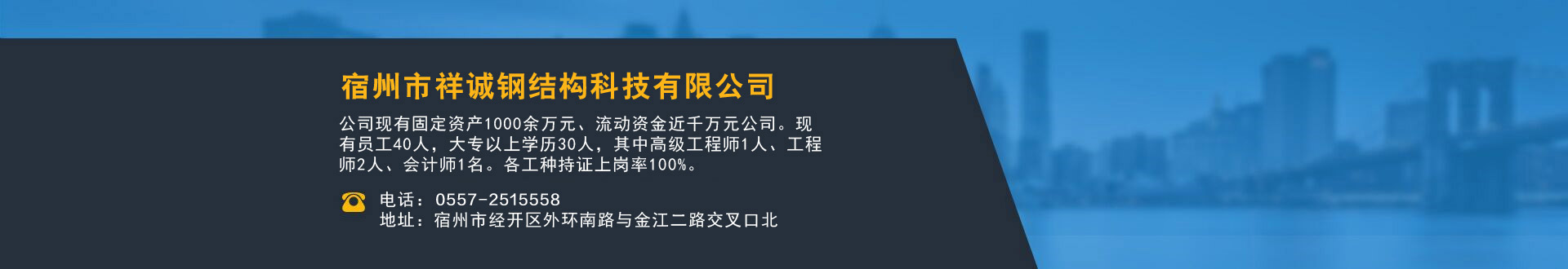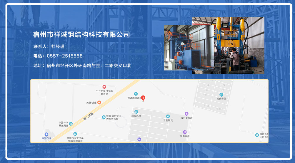 宿州市祥誠(chéng)鋼結(jié)構(gòu)科技有限公司位于宿州市經(jīng)開區(qū)外環(huán)南路與金江二路交叉口北,公司是一家以建設(shè)產(chǎn)業(yè)化為目標(biāo),匯集大型鋼結(jié)構(gòu)廠房、彩鋼活動(dòng)房設(shè)計(jì)、制作、安裝施工一條龍服務(wù)的知名鋼結(jié)構(gòu)公司。公司現(xiàn)有固定資產(chǎn)1000余萬(wàn)元、流動(dòng)資金近千萬(wàn)元公司。現(xiàn)有員工40人,大專以上學(xué)歷30人,其中高級(jí)工程師1人、工程師2人、會(huì)計(jì)師1名。各工種持證上崗率100%。高效化的年青團(tuán)隊(duì)為公司帶來(lái)了蓬勃發(fā)展的動(dòng)力,全體員工以務(wù)實(shí)的態(tài)度,拼搏的精神,創(chuàng)造著企業(yè)的每一天。 公司組織結(jié)構(gòu)嚴(yán)格按現(xiàn)代企業(yè)制度設(shè)計(jì),管理機(jī)構(gòu)設(shè)置合理,制度完善,各部門分工明確...